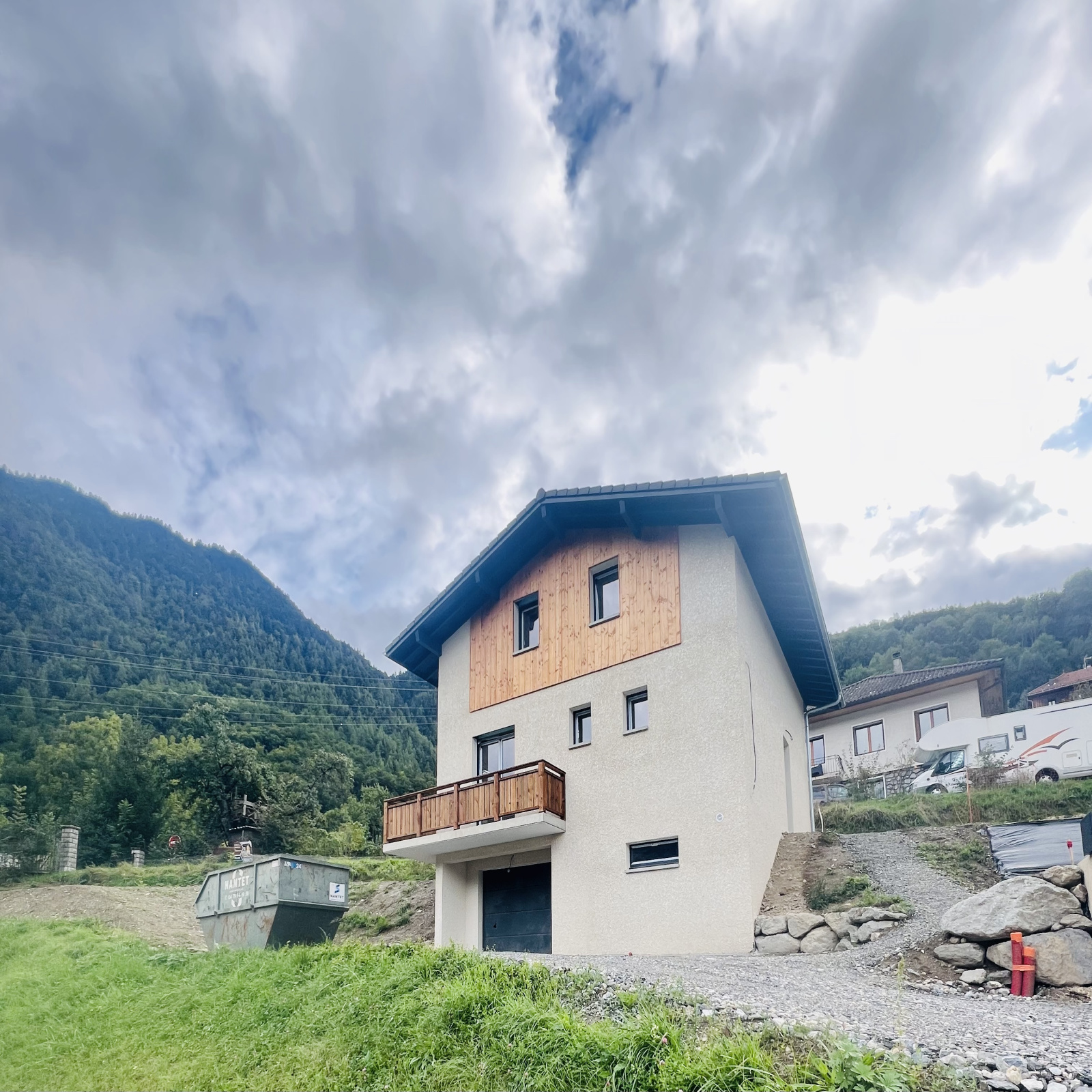 Sur les hauteurs de Grand-Aigueblanche, maison neuve livrable en Octobre 2024 offrant une belle vue et un emplacement idéal.