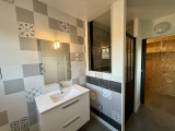 Une salle d'eau rénovée offre un beau volume et une grande ouverture.