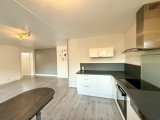 Cet appartement bénéficie d'un bel espace de vie avec cuisine américaine équipée et salon. L'ensemble ouvrant sur le balcon.